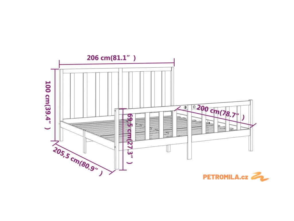 • Rozměry rámu postele: 205,5 x 206 x 69,5 cm (D x Š x V)