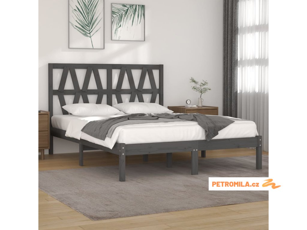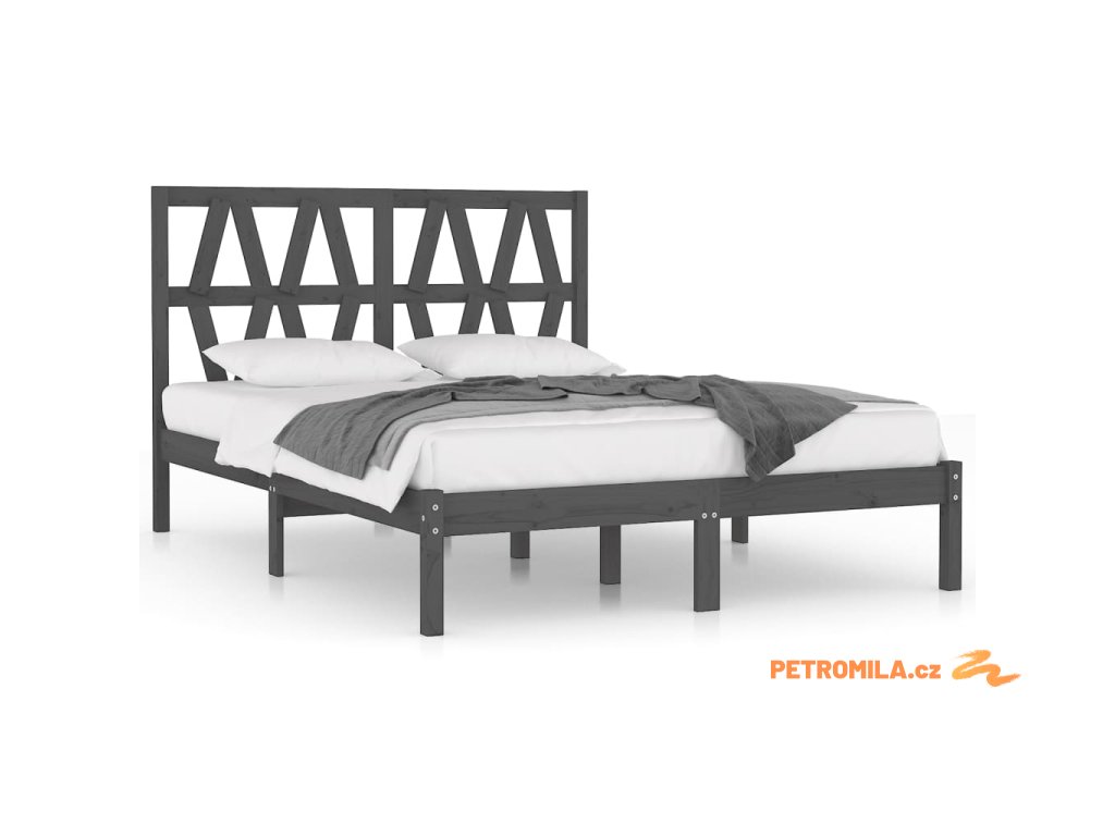 Rám postele šedý masivní borovice 200 x 200 cm
