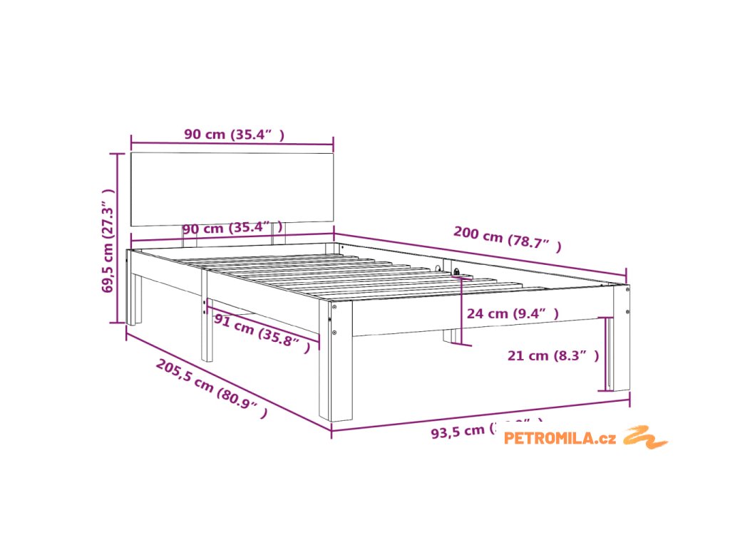 - Tento rám postele je vhodný pro matrace o rozměrech 90 x 200 cm.