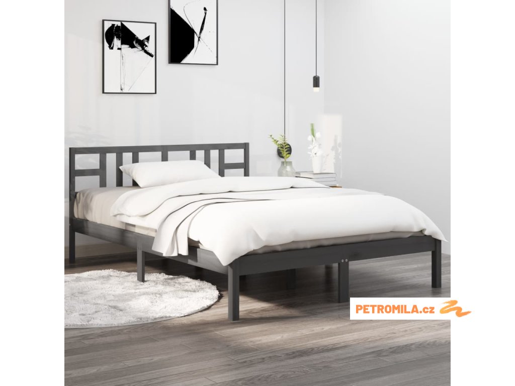 Rám postele šedý masivní dřevo 200 x 200 cm