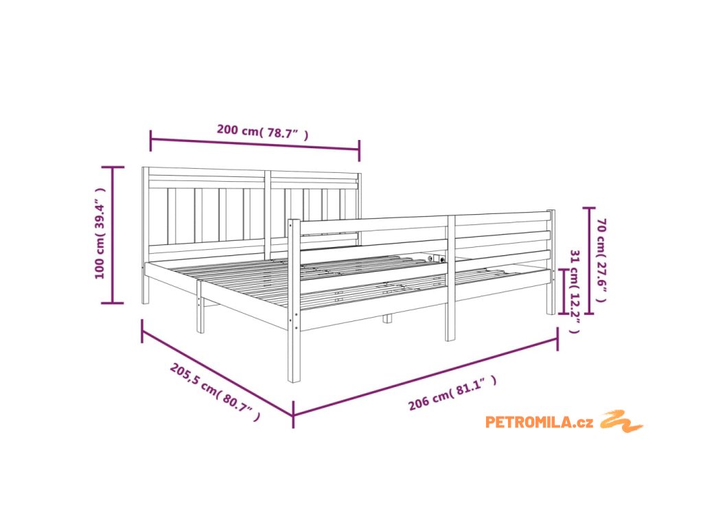 - Tento rám postele je vhodný pro matrace o rozměrech 200 x 200 cm.