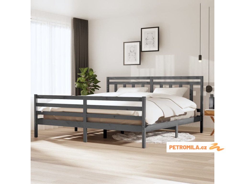 Rám postele šedý masivní dřevo 200 x 200 cm