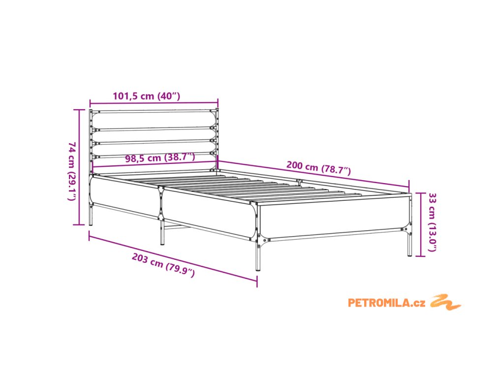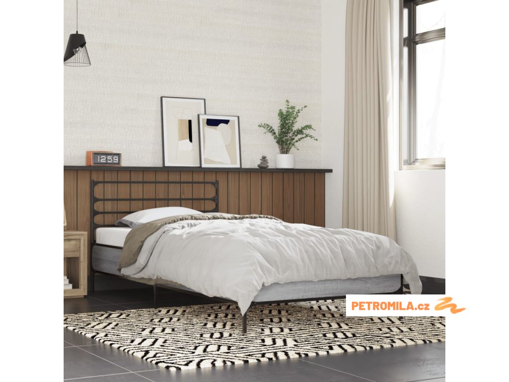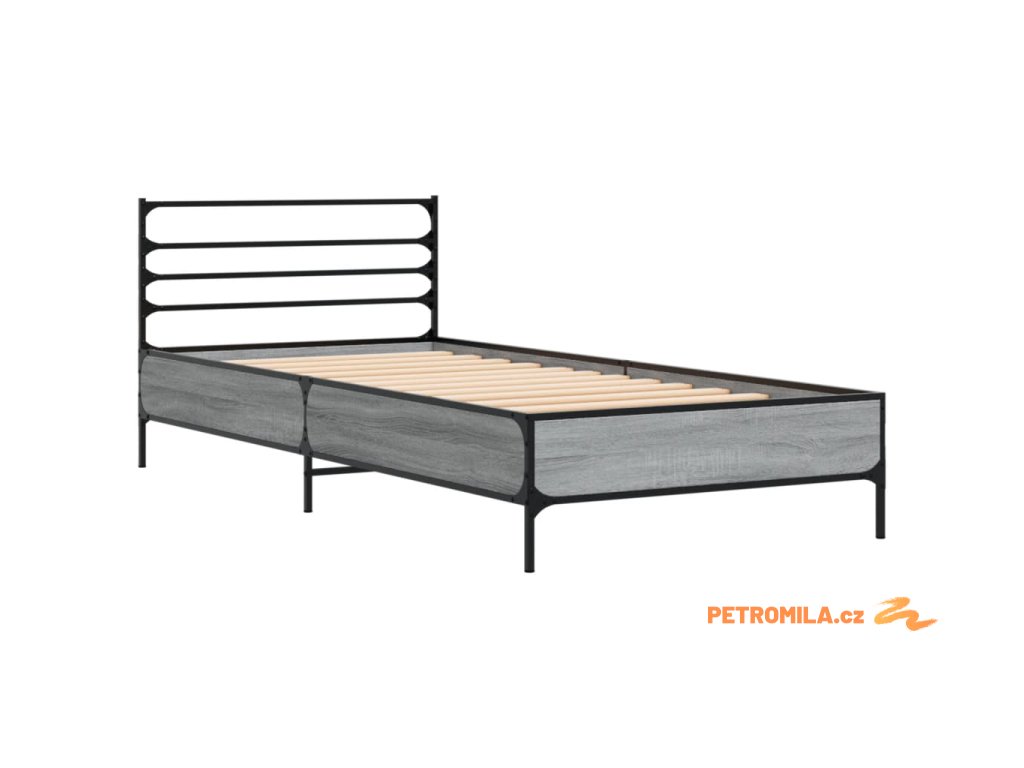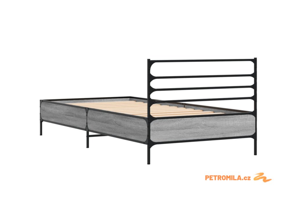 Rám postele šedý sonoma 100 x 200 cm kompozitní dřevo a kov