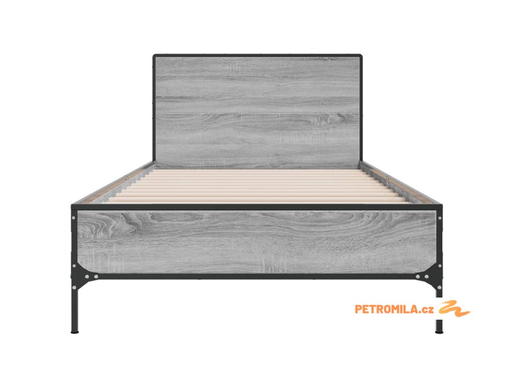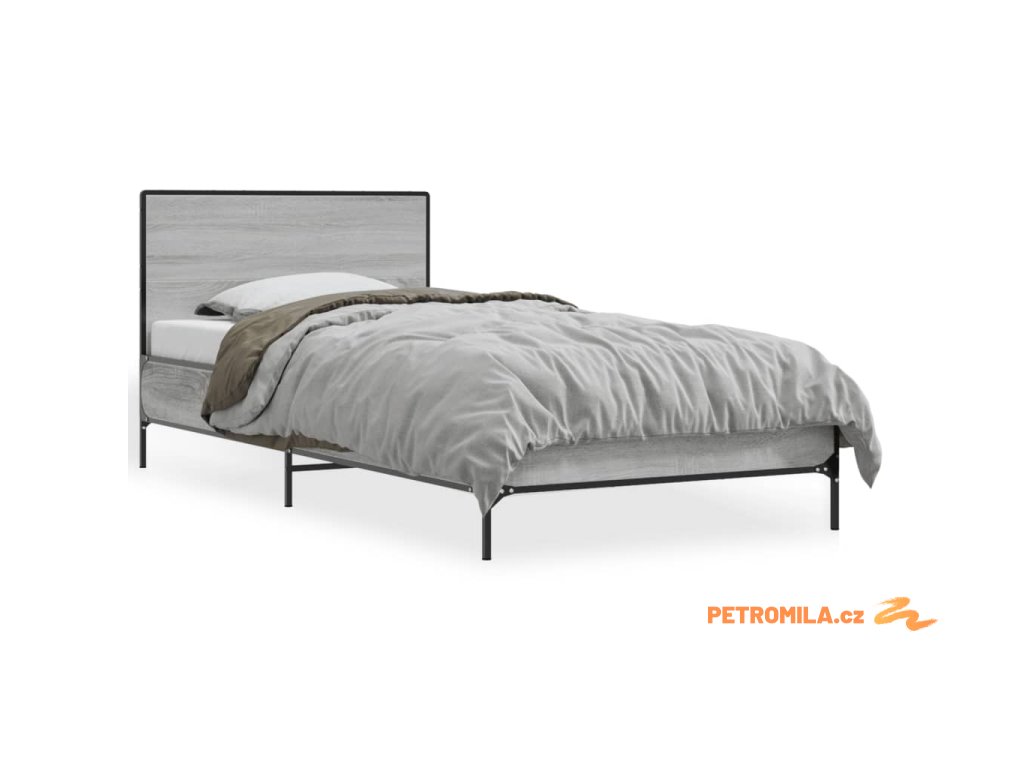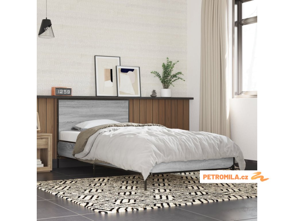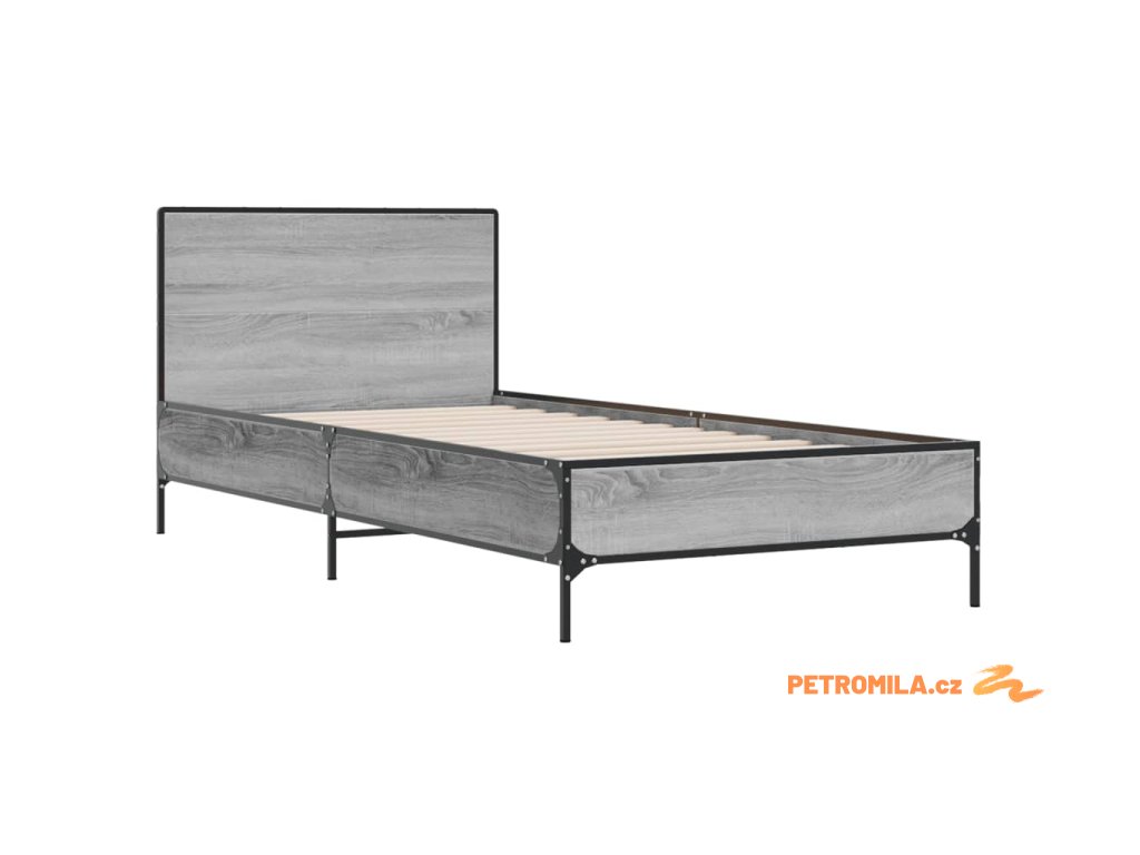 Rám postele šedý sonoma 100 x 200 cm kompozitní dřevo a kov