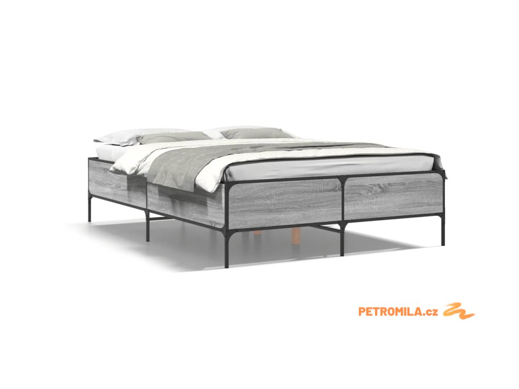 Rám postele šedý sonoma 120 x 190 cm kompozitní dřevo a kov