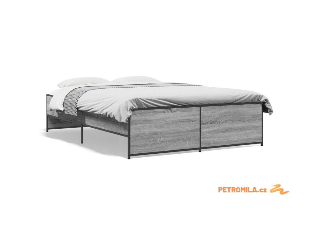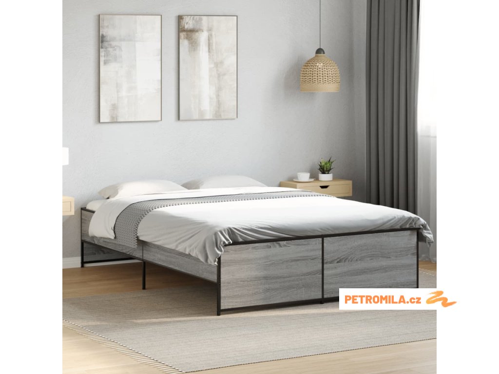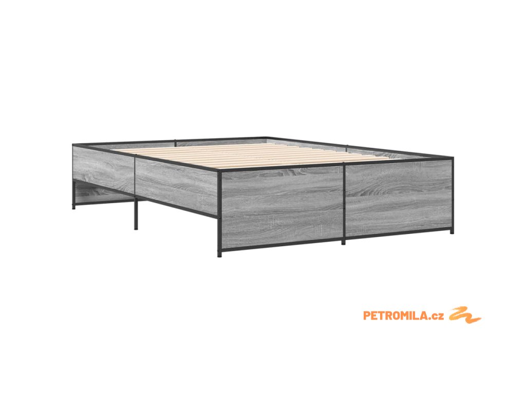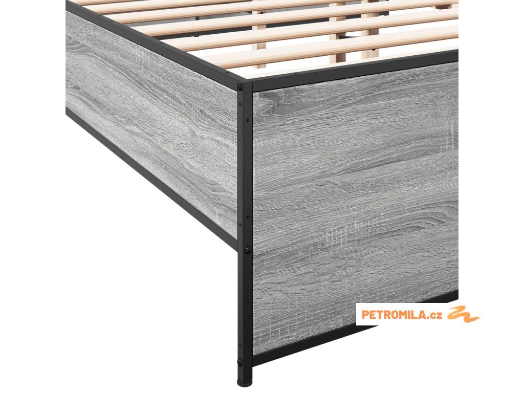 Rám postele šedý sonoma 120 x 190 cm kompozitní dřevo a kov