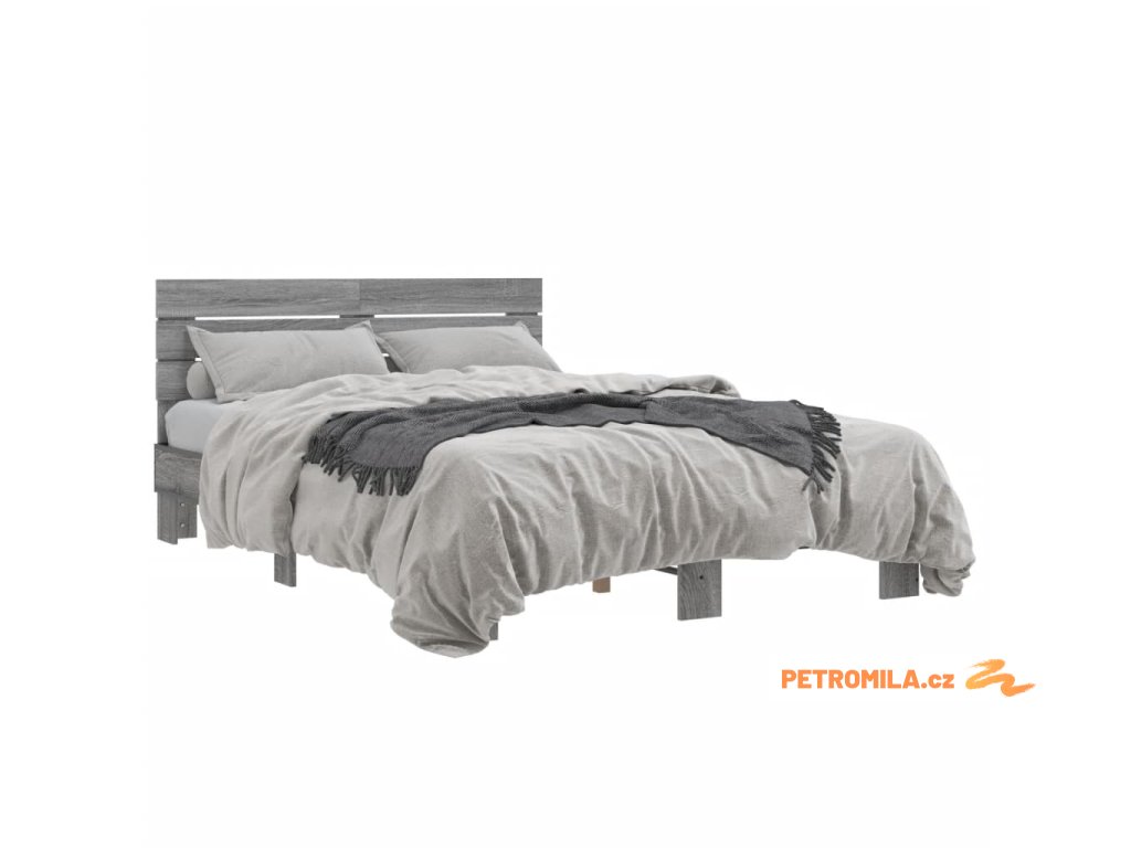 Rám postele šedý sonoma 120 x 200 cm kompozitní dřevo a kov