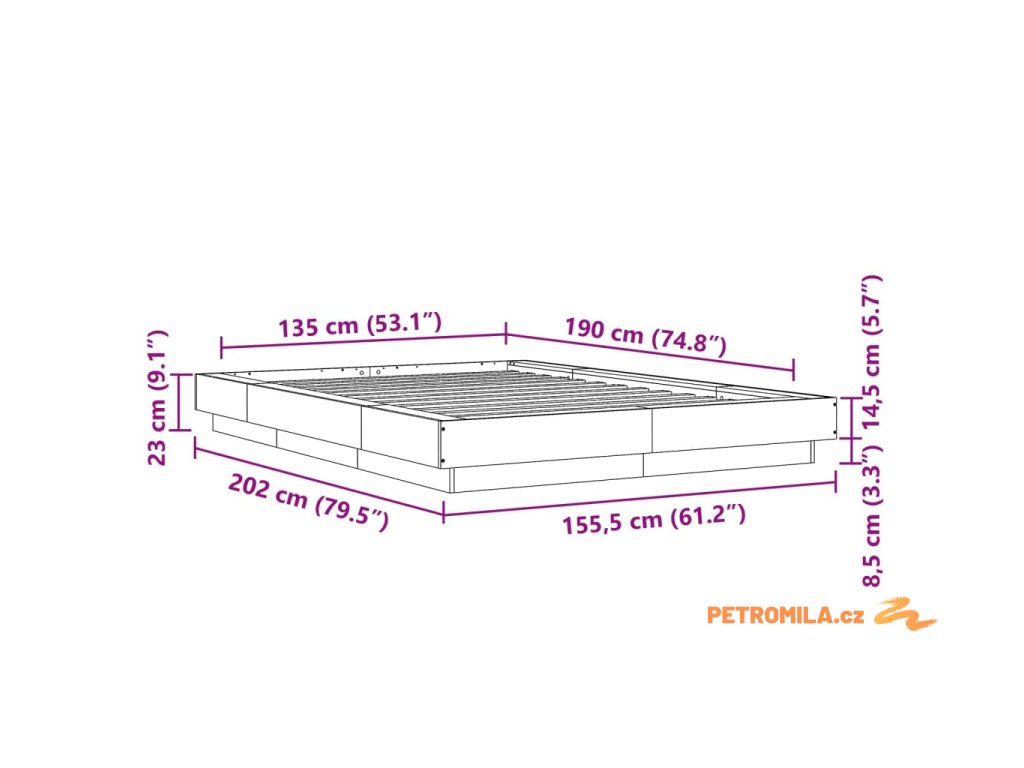 Rám postele šedý sonoma 135 x 190 cm kompozitní dřevo