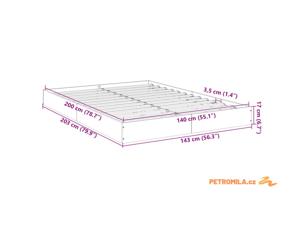 Rám postele šedý sonoma 140 x 200 cm kompozitní dřevo