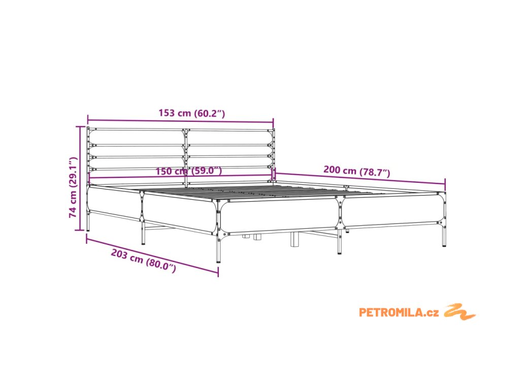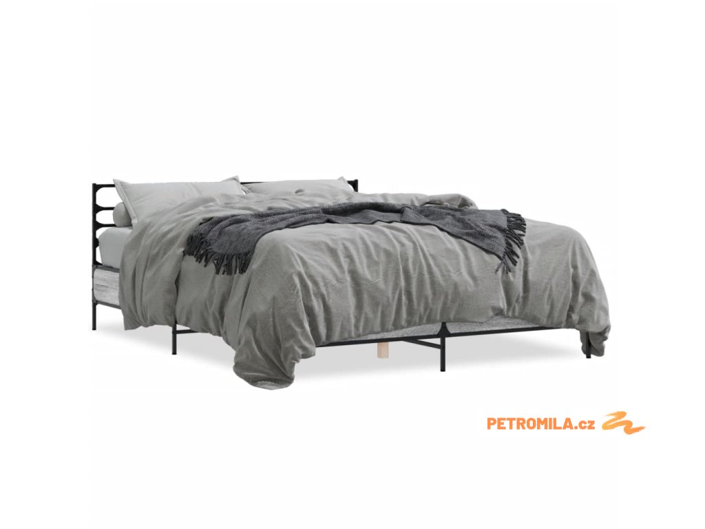 Rám postele šedý sonoma 150 x 200 cm kompozitní dřevo a kov
