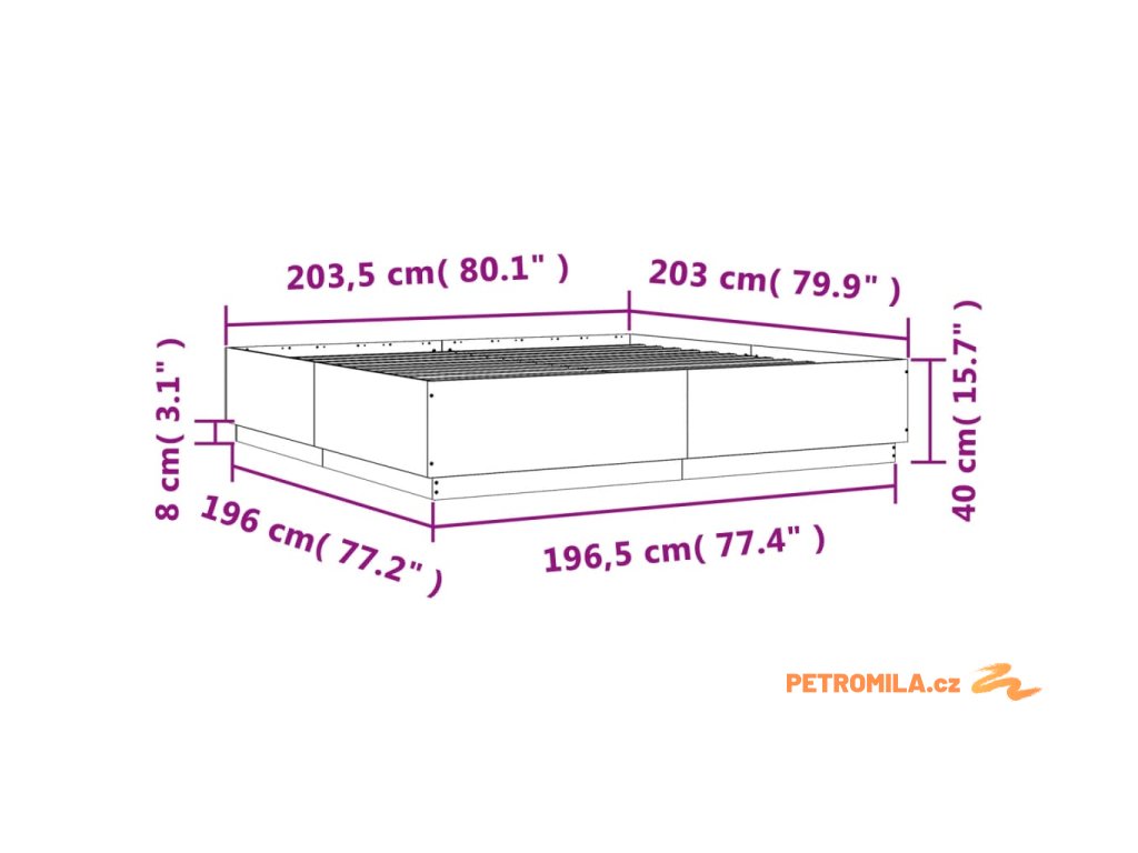 Rám postele šedý sonoma 200 x 200 cm kompozitní dřevo