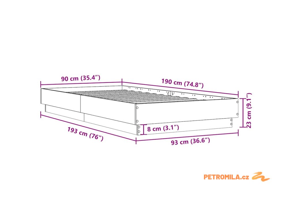 Rám postele šedý sonoma 90 x 190 cm kompozitní dřevo