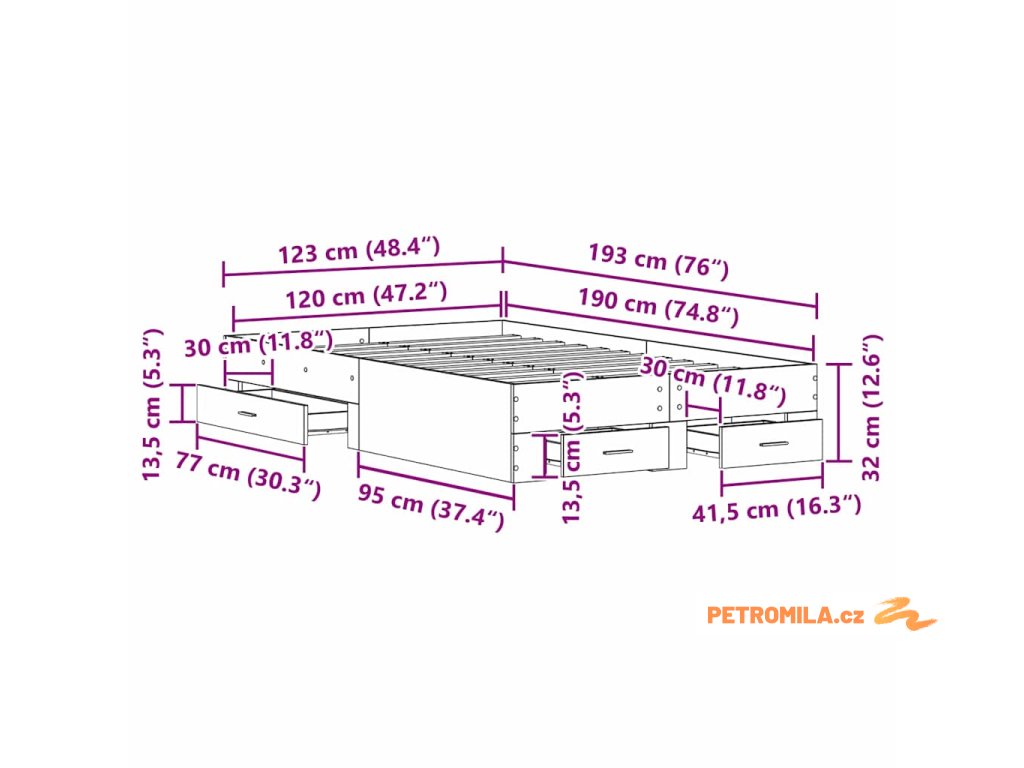 - Celkové rozměry: 193 x 123 x 32 cm (D x Š x V)