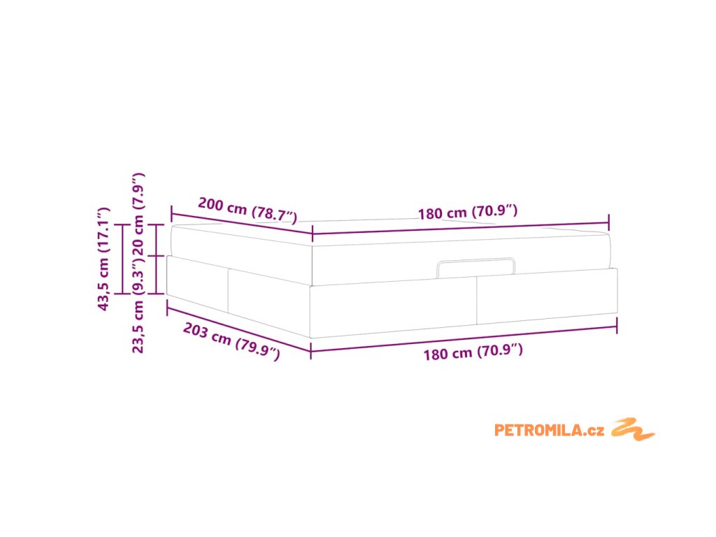 - Celkové rozměry: 203 x 180 x 43.5 cm (D x Š x V)