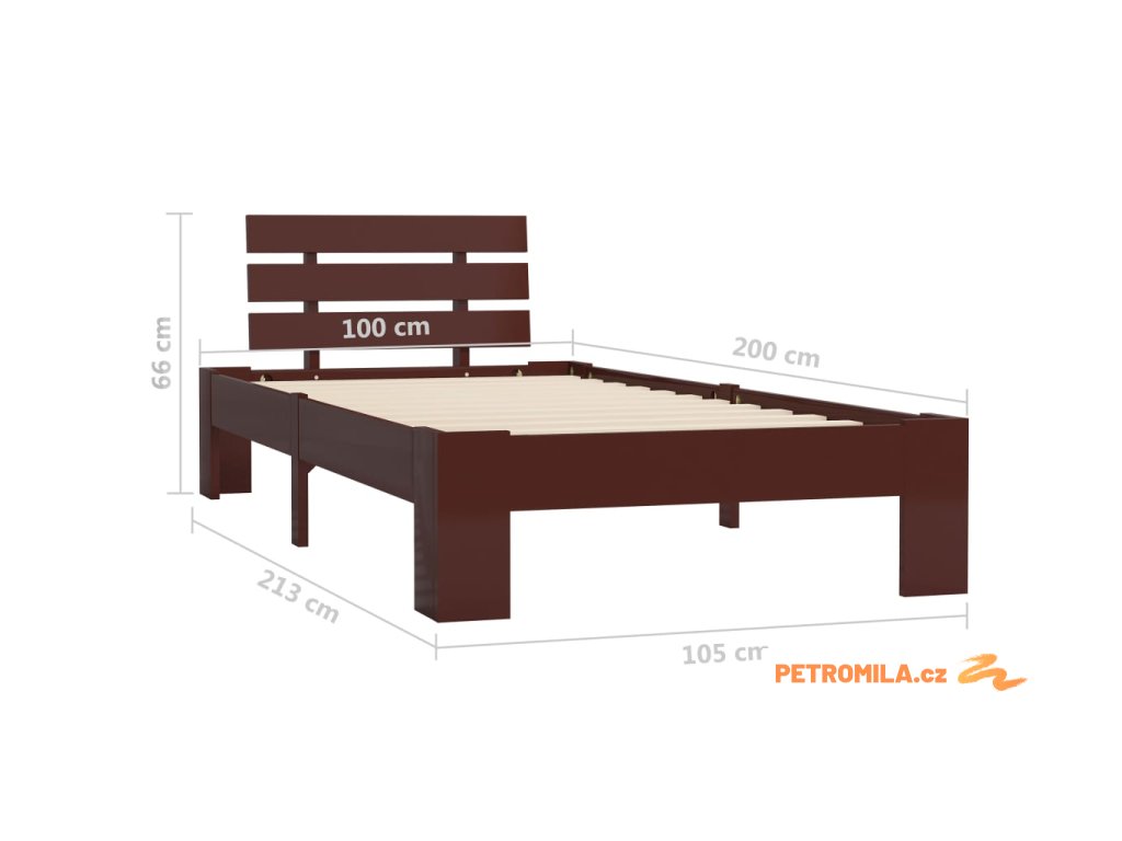 Rám postele tmavě hnědý masivní borovice 100 x 200 cm