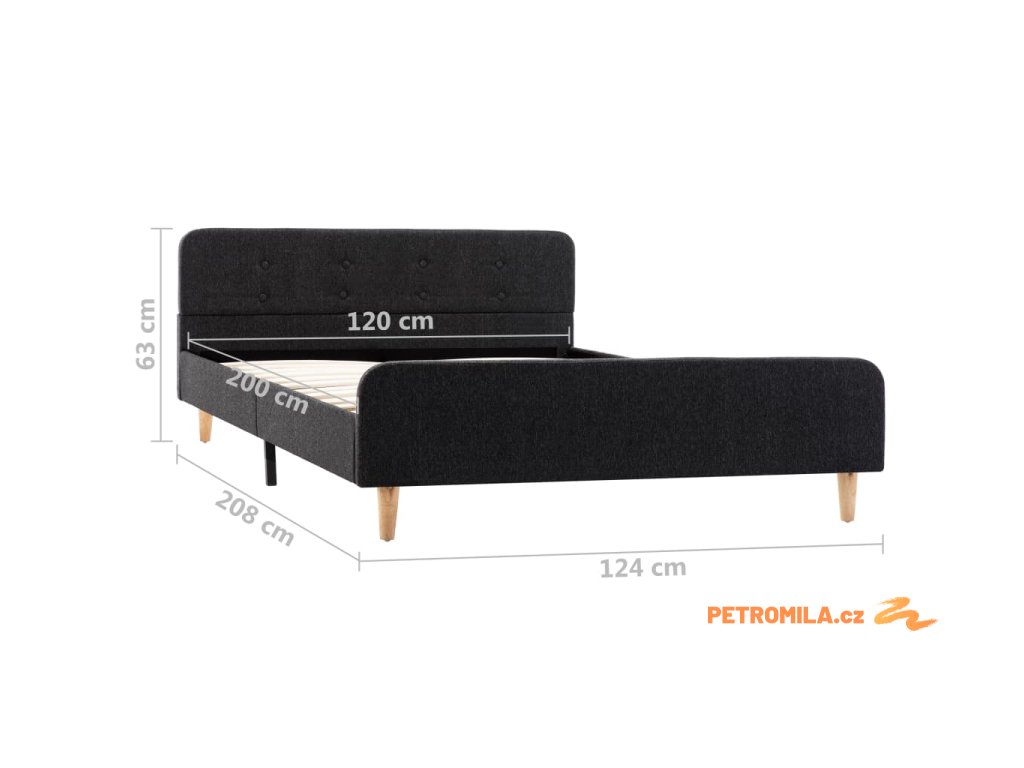 Rám postele tmavě šedý jutovina 120 x 200 cm