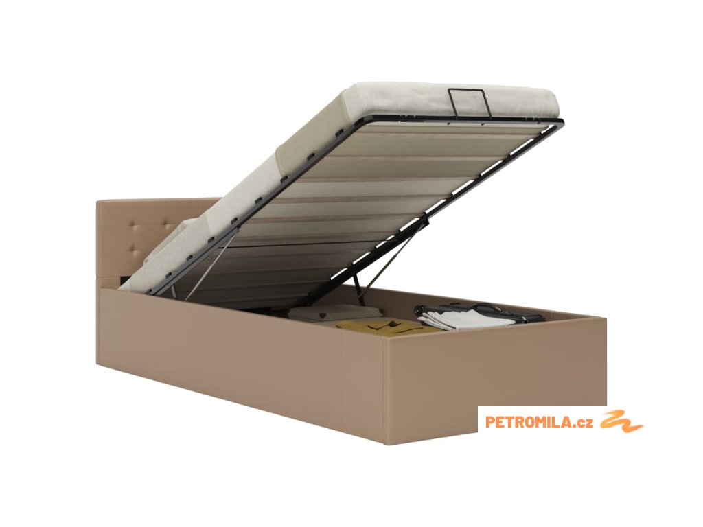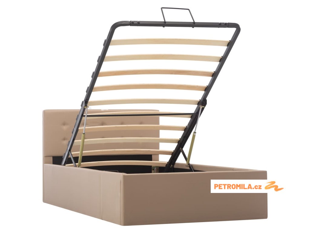 Rám postele úložný prostor cappuccino umělá kůže 100 x 200 cm