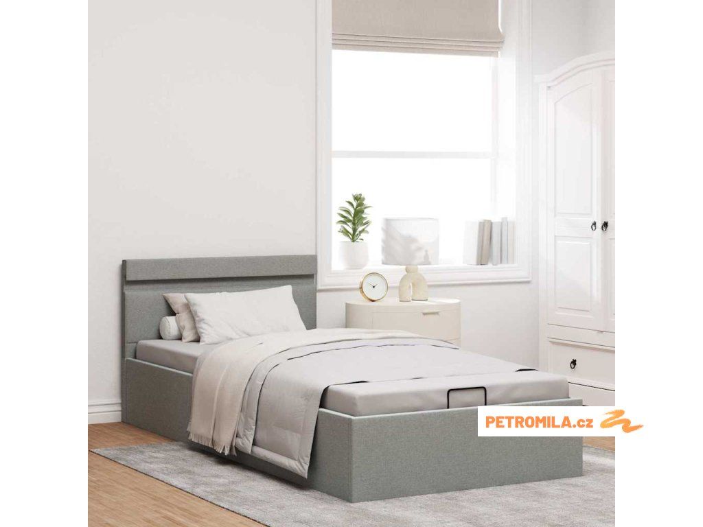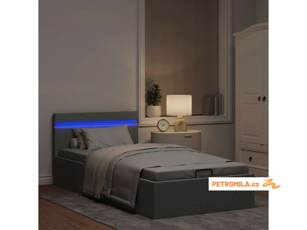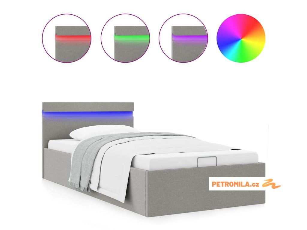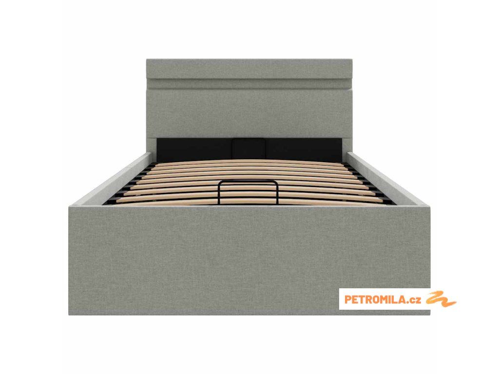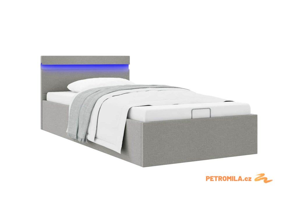 Rám postele úložný prostor LED světle šedý textil 100 x 200 cm