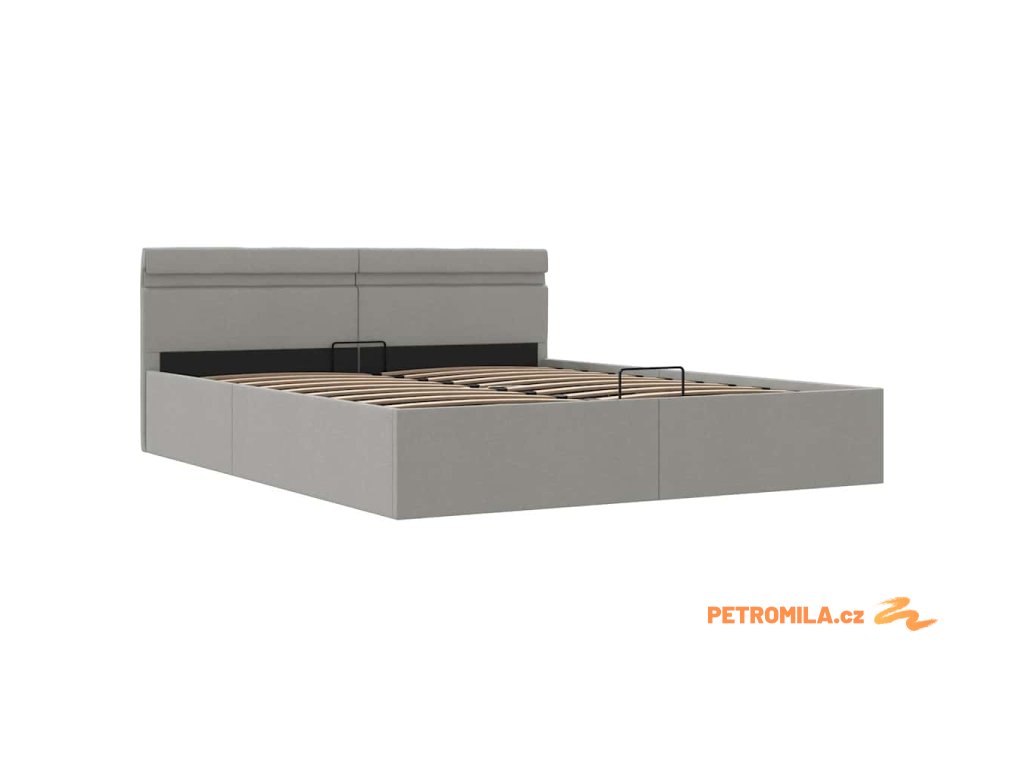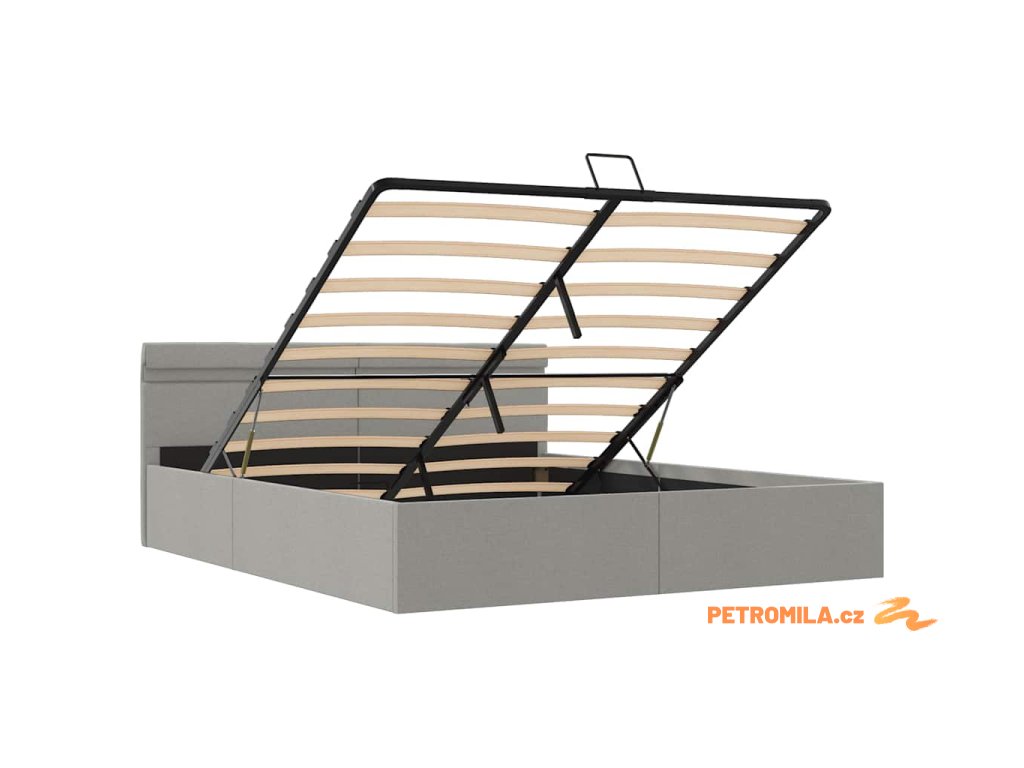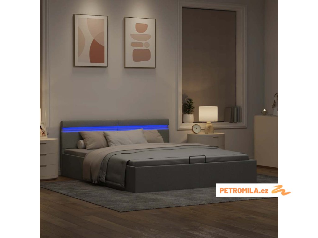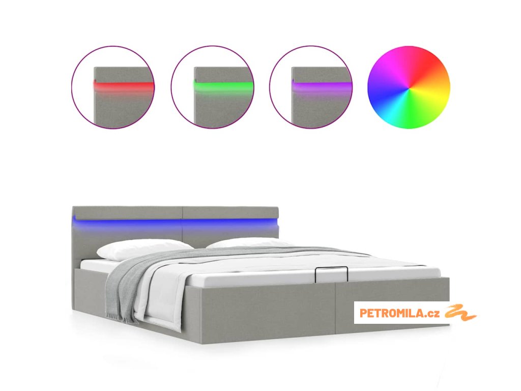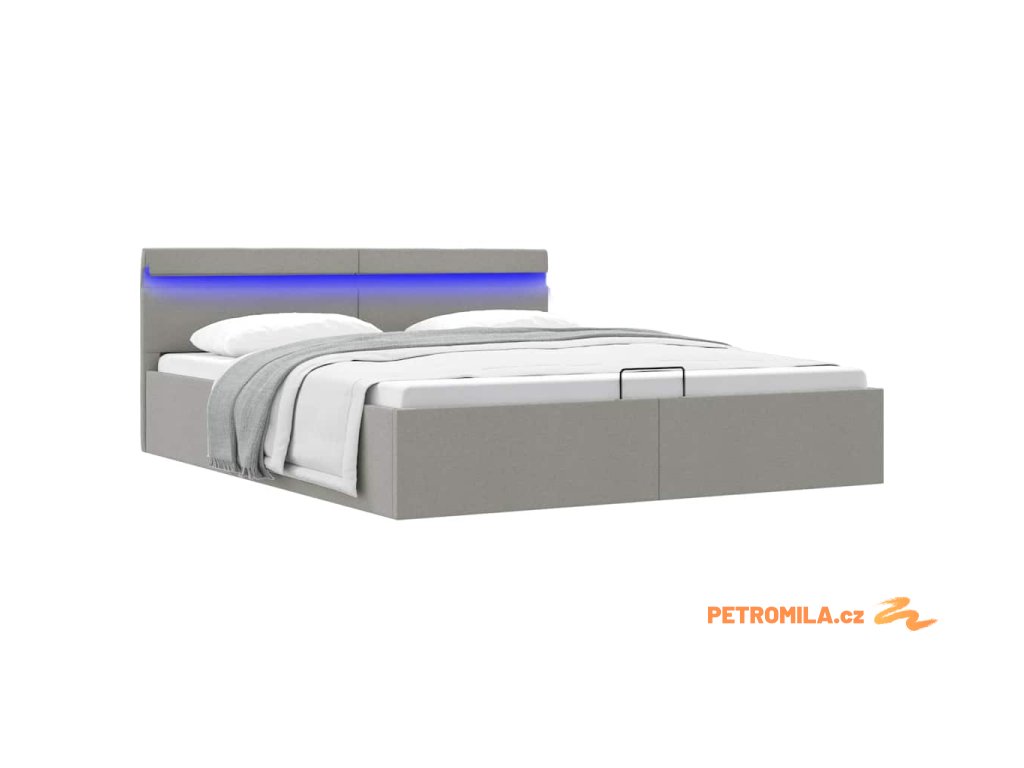 Rám postele úložný prostor LED světle šedý textil 180 x 200 cm