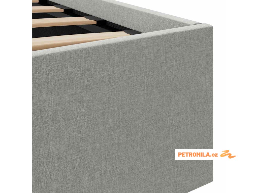 - Materiál: čalounění z textilu + překližkové lamely + rám z oceli a MDF
