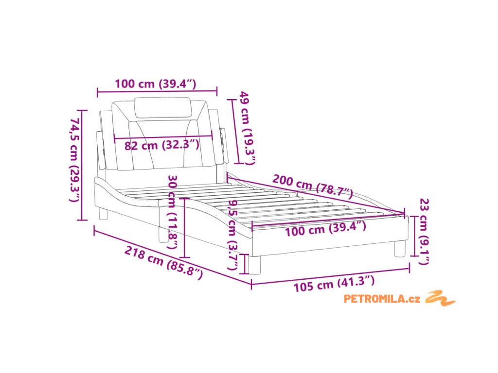 - Vhodná velikost matrace: 100 x 200 cm (Š x D) (matrace není součástí balení)
