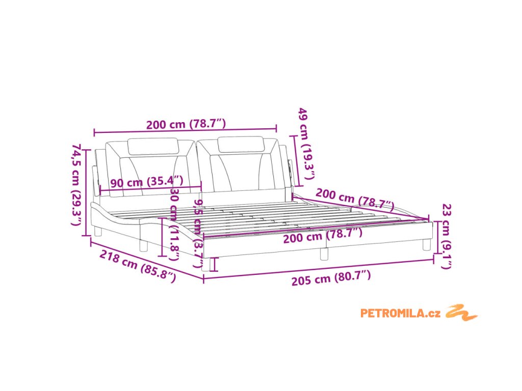 - Rozměry: 200 x 15 x 49 cm (D x Š x H)