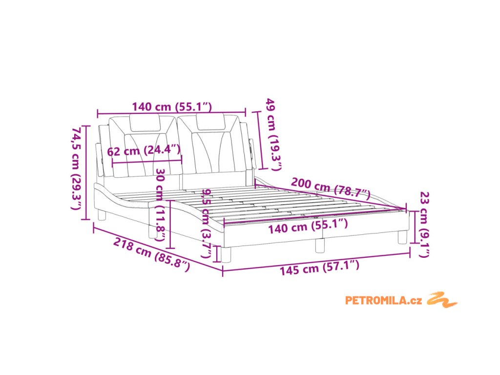 - Celkové rozměry: 218 x 145 x 74,5 cm (D x Š x V)
