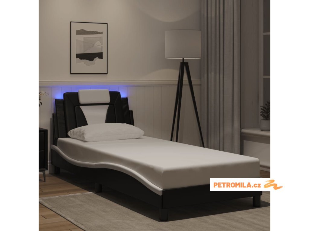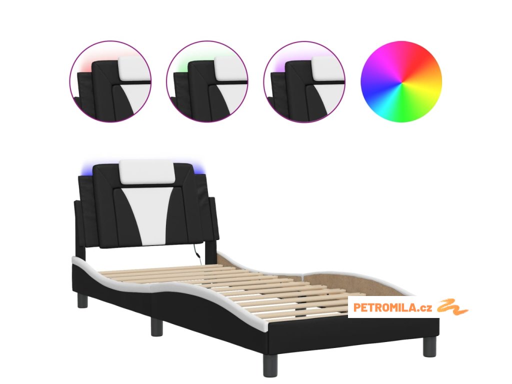 Rám postele Viana s LED bez matrace černý a bílý 90x200 cm