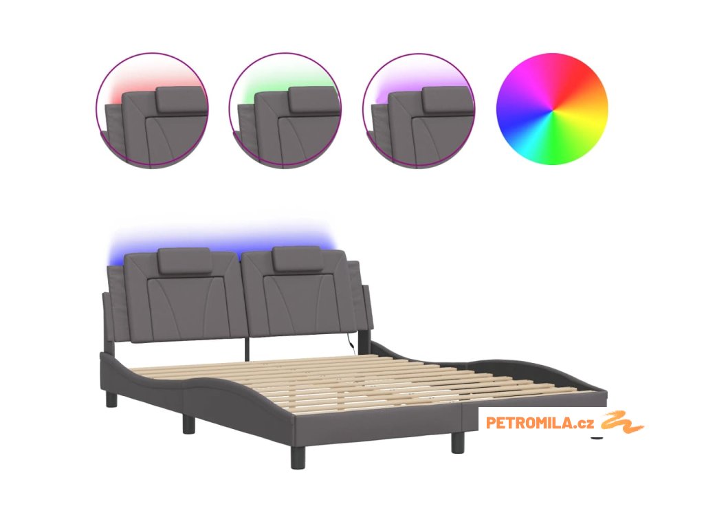 Rám postele Viana s LED bez matrace šedý 160 x 200 cm