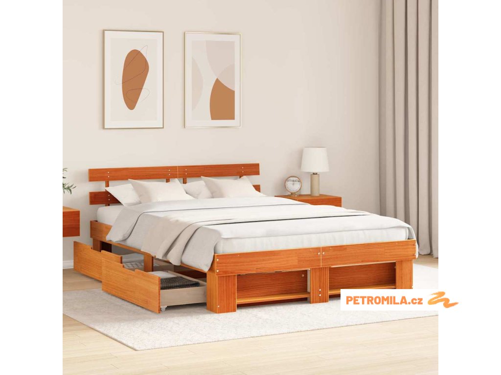 Rám postele Voskově hnědá 160 x 200 cm Masivní borové dřevo