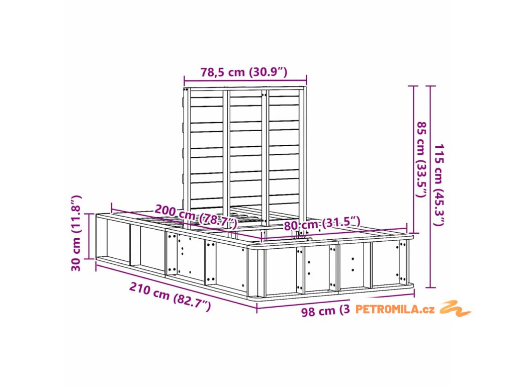 - Celkové rozměry: 210 x 98 x 30 cm (D x Š x V)