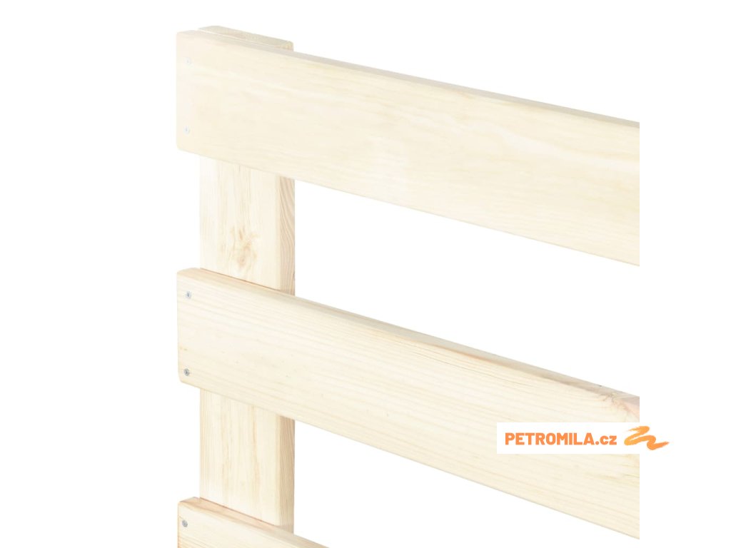 Rám postele je zhotovený z masivního borového dřeva, je tedy nesmírně pevný a odolný. Silné lamely nabízí potřebnou oporu a zároveň vám zajistí mimořádné pohodlí. Postelový rám je vhodný pro matrace o rozměrech 90 x 200 cm.