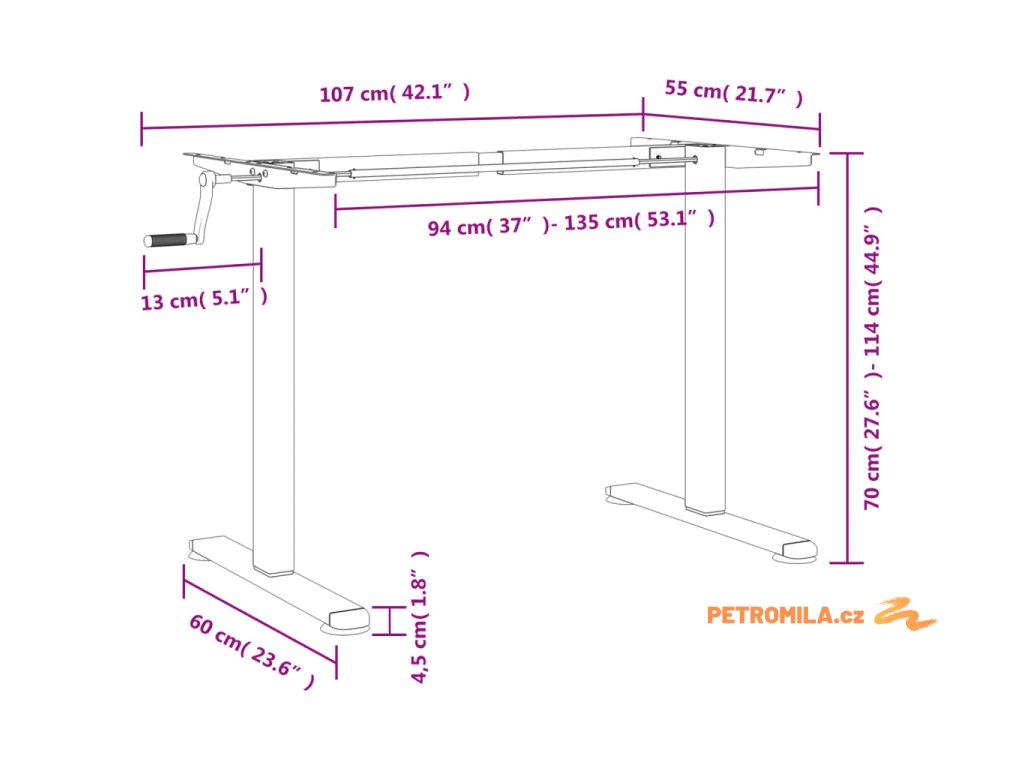 Rám stojacího stolu černý (94–135) x 60 x (70–114) cm ocel