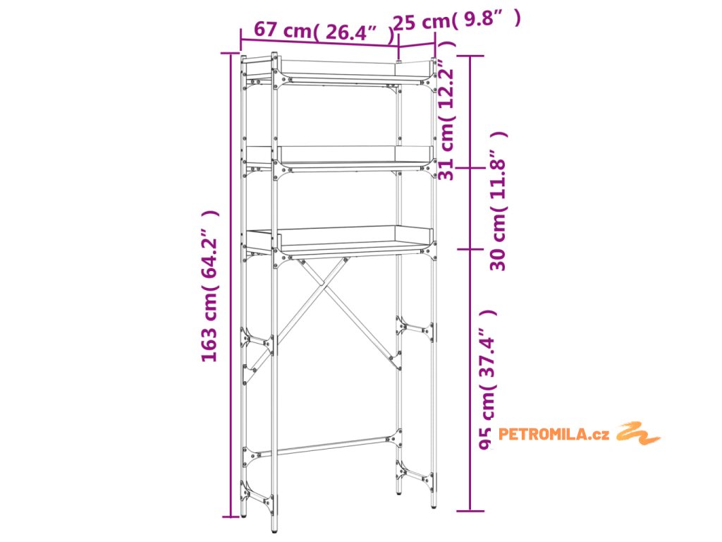 Tento 3patrový regál nad pračku je perfektním řešením pro vytvoření dalších úložných prostor v přeplněné koupelně nebo prádelně.