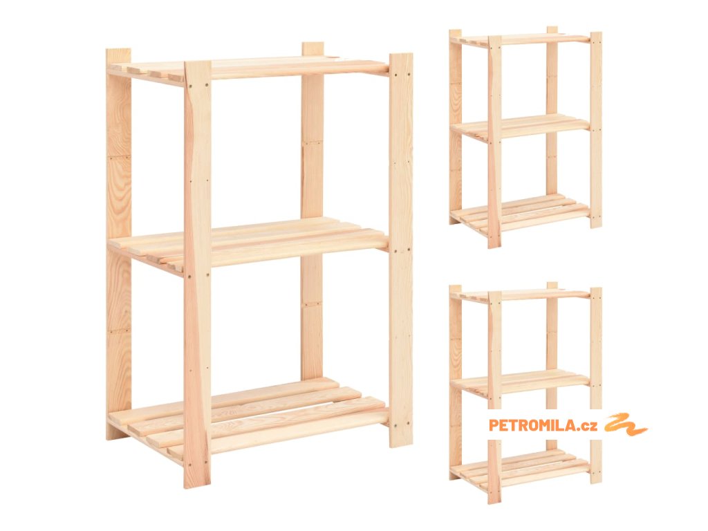 Regály 3 police 3 ks 60 x 38 x 90 cm masivní borovice 150 kg