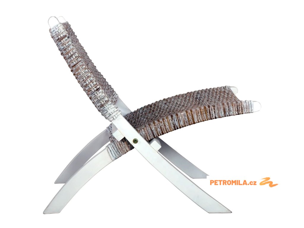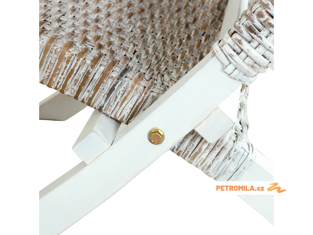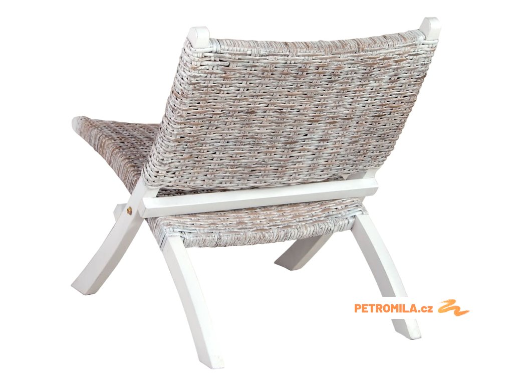 Relaxační křeslo bílé přírodní ratan kubu a masivní mahagon