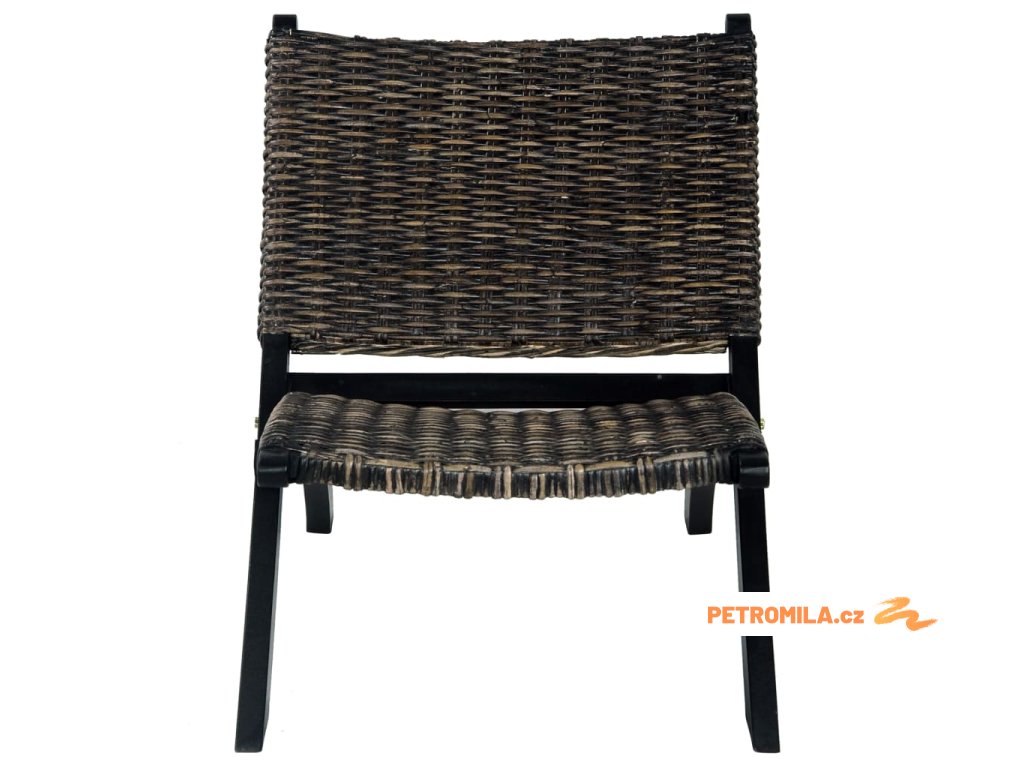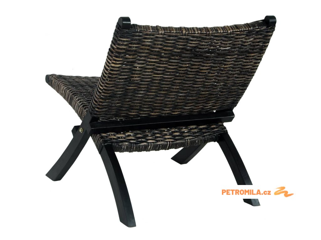 Relaxační křeslo černé přírodní ratan kubu a masivní mahagon