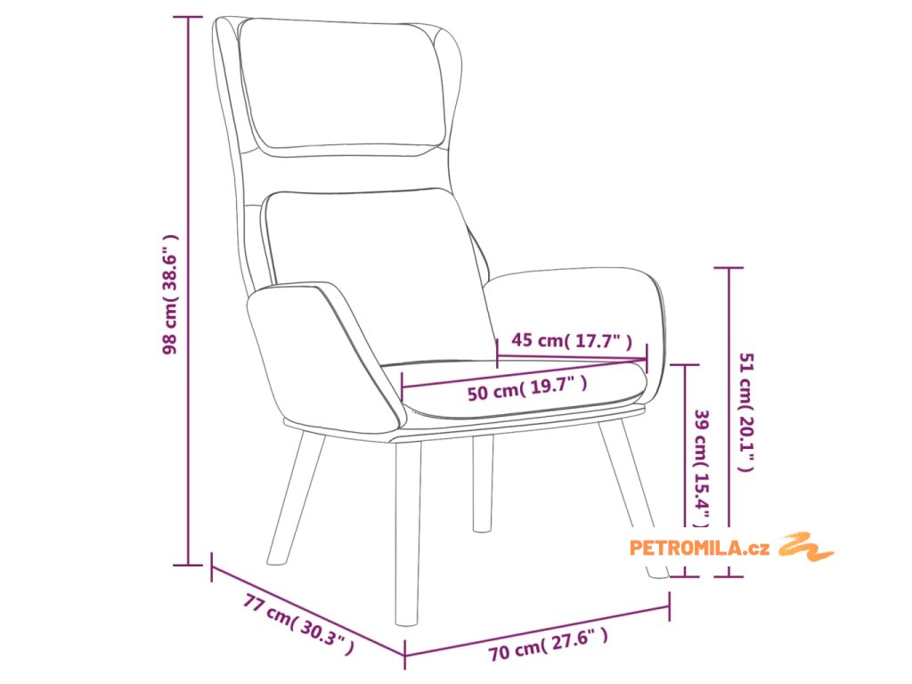 - Materiál: samet (100% polyester), kov, masivní kaučukovníkové dřevo, překližka