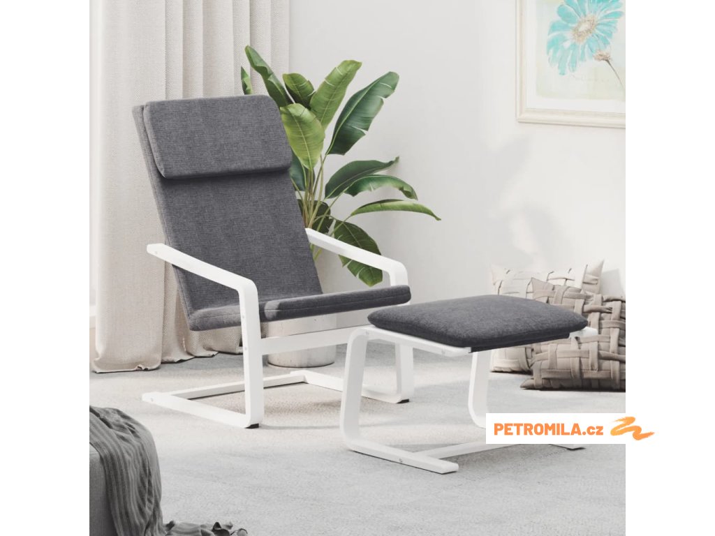 Relaxační křeslo s podnožkou tmavě šedé textil