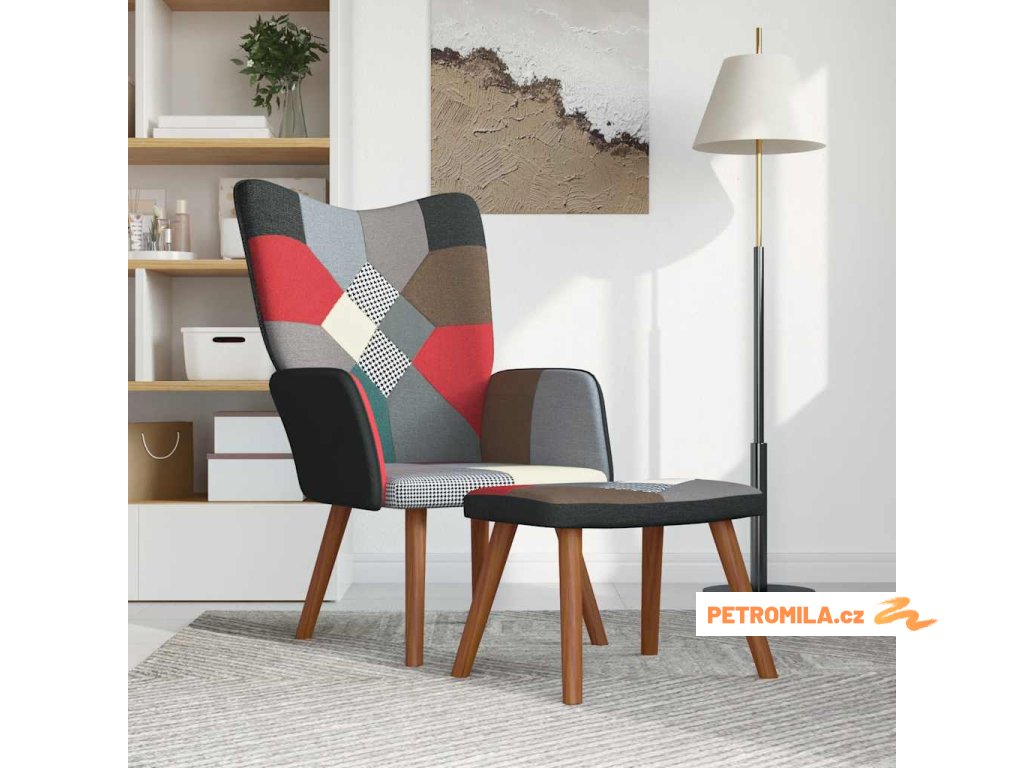 Křeslo s tmavým patchworkovým designem zapůsobí svým příjemným estetickým vzhledem. Pěnové polstrování a čalounění měkkou látkou vám zaručí optimální pohodlí při sezení. Relaxační křeslo se stoličkou má navíc ocelový rám a dřevěné nohy, což zajišťuje jeho stabilitu a dlouhou životnost.