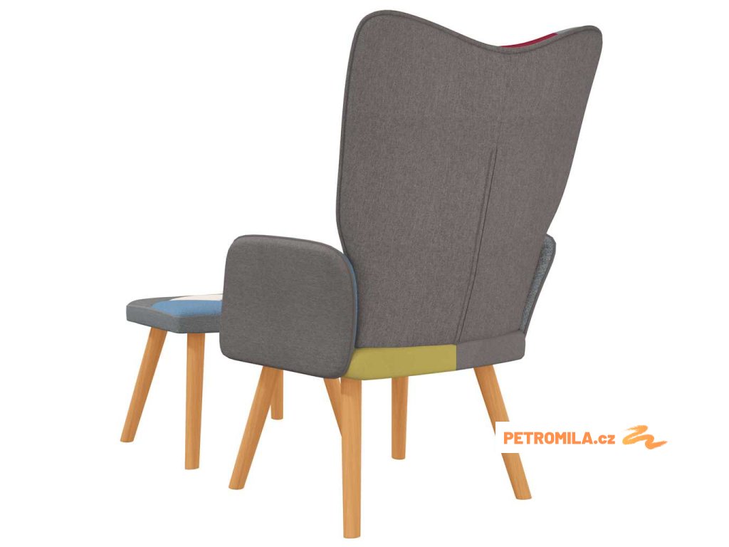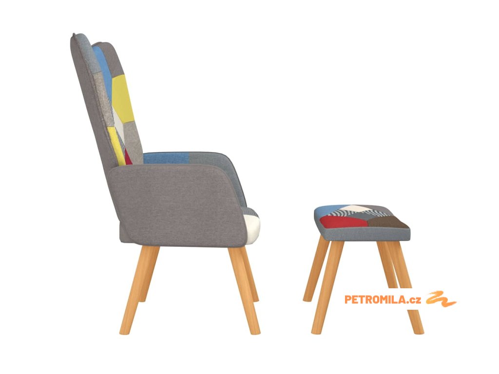Křeslo s designem patchwork zapůsobí svým příjemným estetickým vzhledem. Pěnové polstrování a čalounění měkkou látkou vám zaručí optimální pohodlí při sezení. Relaxační křeslo se stoličkou má také ocelový rám a stojí na dřevěných nohách, je tedy stabilní a velmi odolné.