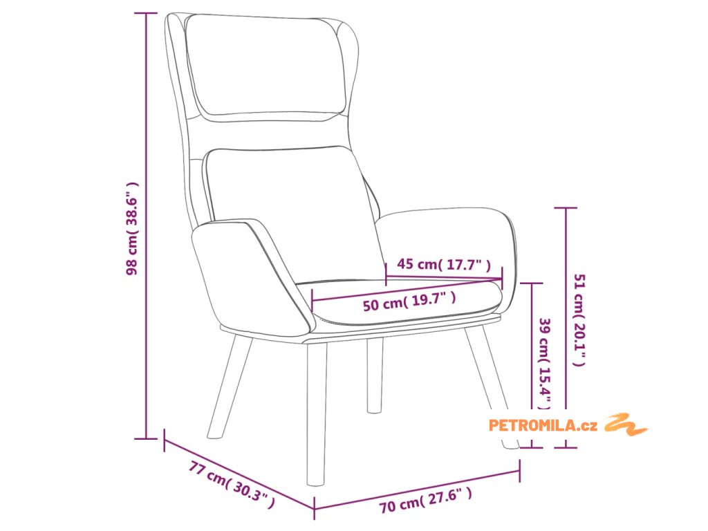 Hustě polstrované relaxační křeslo je čalouněné hebkým sametem, a tak vám při sezení nabídne maximální komfort. Podepírá ho kovový rám a nohy z masivního kaučukovníkového dřeva, křeslo je tudíž odolné a stabilní. Navíc má područky, kde si můžete pohodlně opřít lokty.