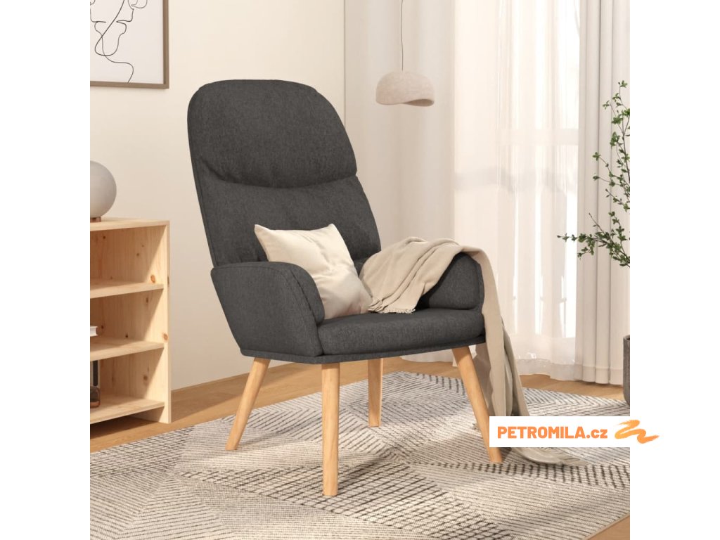 Relaxační křeslo se stoličkou tmavě šedé samet