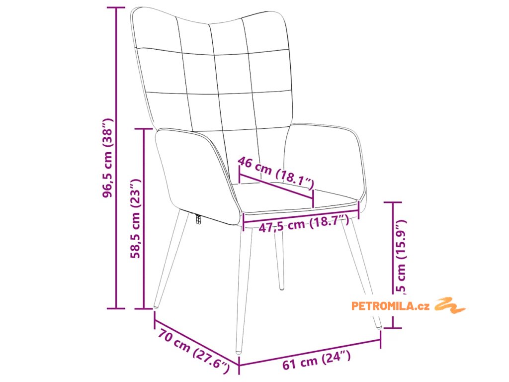 - Výška područek od země: 58,5 cm