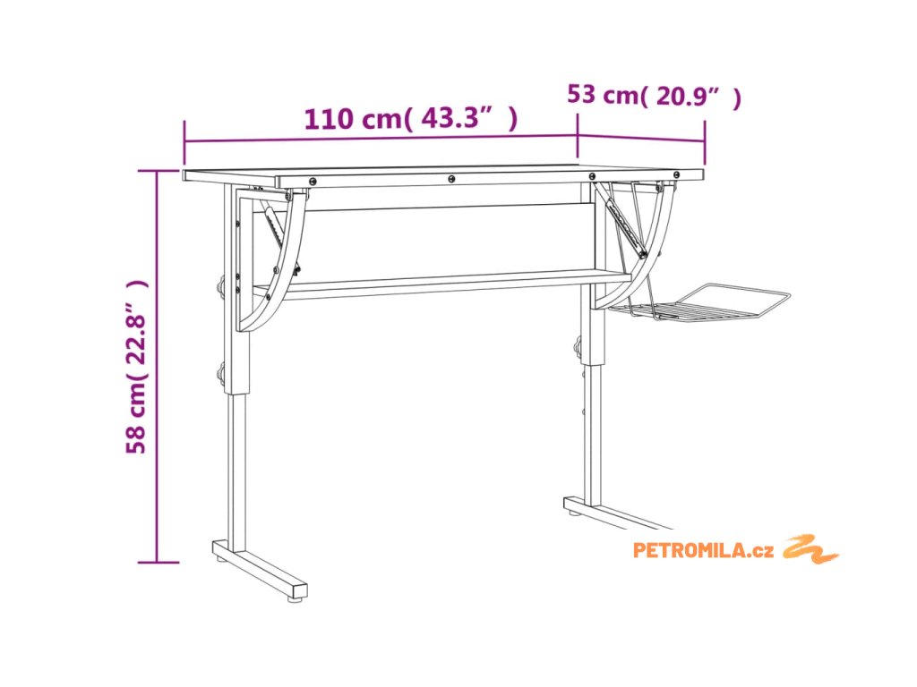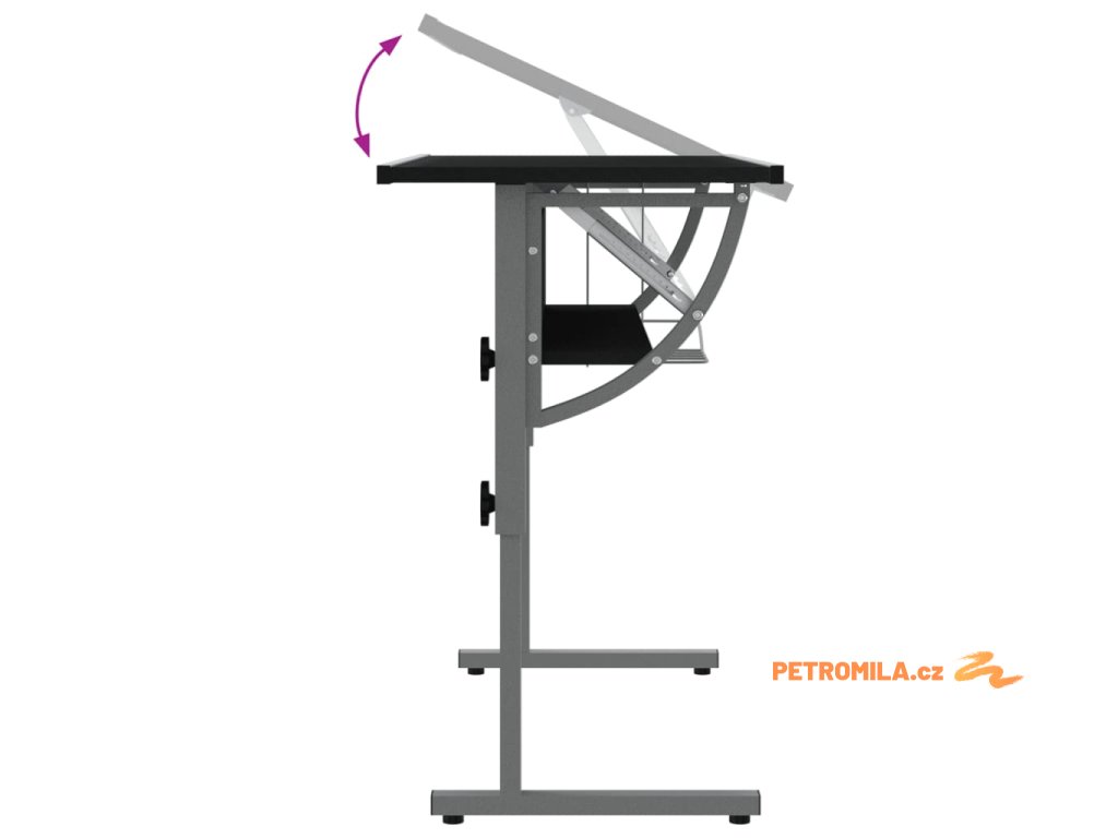 - Nastavitelná pracovní plocha: Pracovní plocha psacího stolu je úhlově nastavitelná, což umožňuje dokonalou ergonomickou pracovní polohu pro vaše maximální pohodlí.
