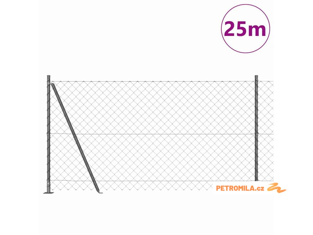 Řetězový plot se sloupy Šedá 1.2 x 25 m Ocel