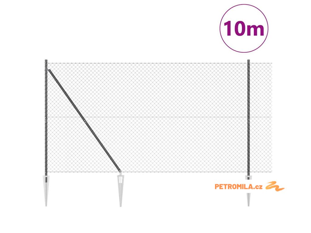 Řetězový plot se sloupy Šedá 1.5 x 10 m Ocel