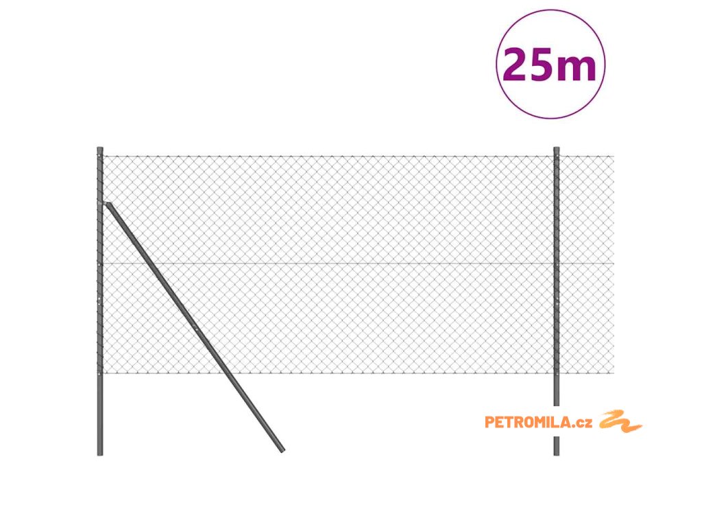 Řetězový plot se sloupy Šedá 1 x 25 m Ocel