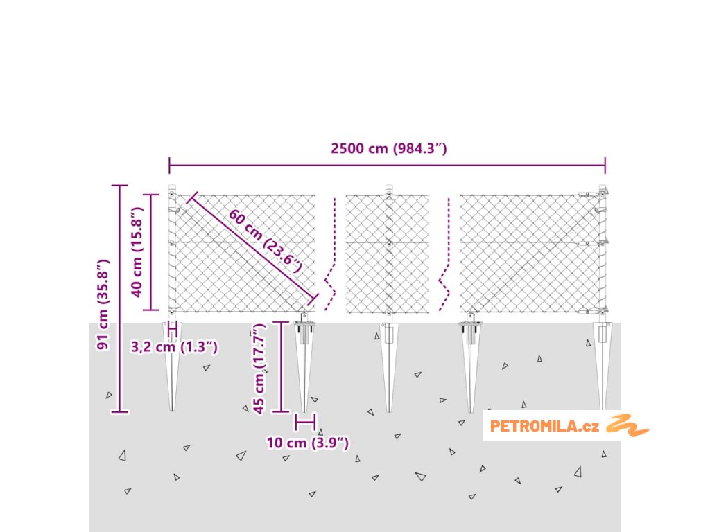 Řetězový plot se sloupy Stříbrná 0,4 x 25 m Ocel