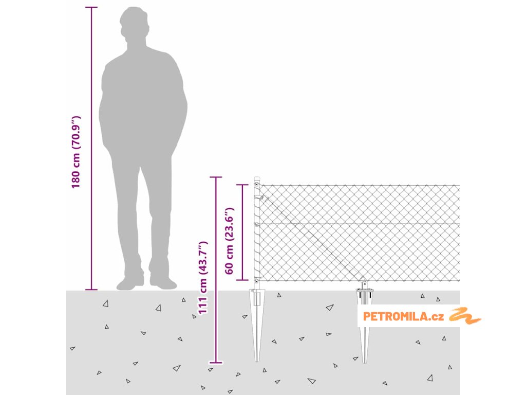 Řetězový plot se sloupy Stříbrná 0,6 x 25 m Ocel